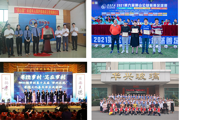 2007年,公司创立了“华兴玻璃员工互助基金”;2012年,华兴玻璃关心下一代工作委员会挂牌成立;2017年8月11日,南海区首个“同心圆”未成年人观护基地在华兴玻璃成立。